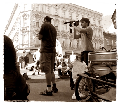 Bei der Generalprobe am Vorabend frieren wir uns fast alles ab, denn die Veranstaltung findet im Freien statt. Ich glaube, ohne Handschuhe würde das eiskalte Mikro noch jetzt an meiner Handfläche kleben.